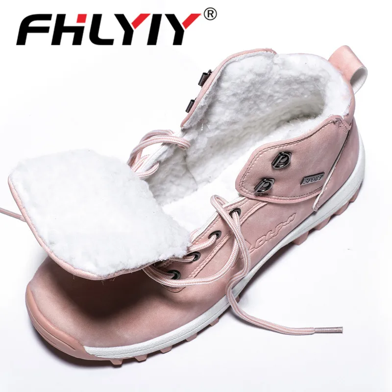 TOP Fhlyiy Brand Woman Winter Boots 2019 Plush Pu Leather Ankle Boots Outdoor Non-Slip Sneakers Rubber