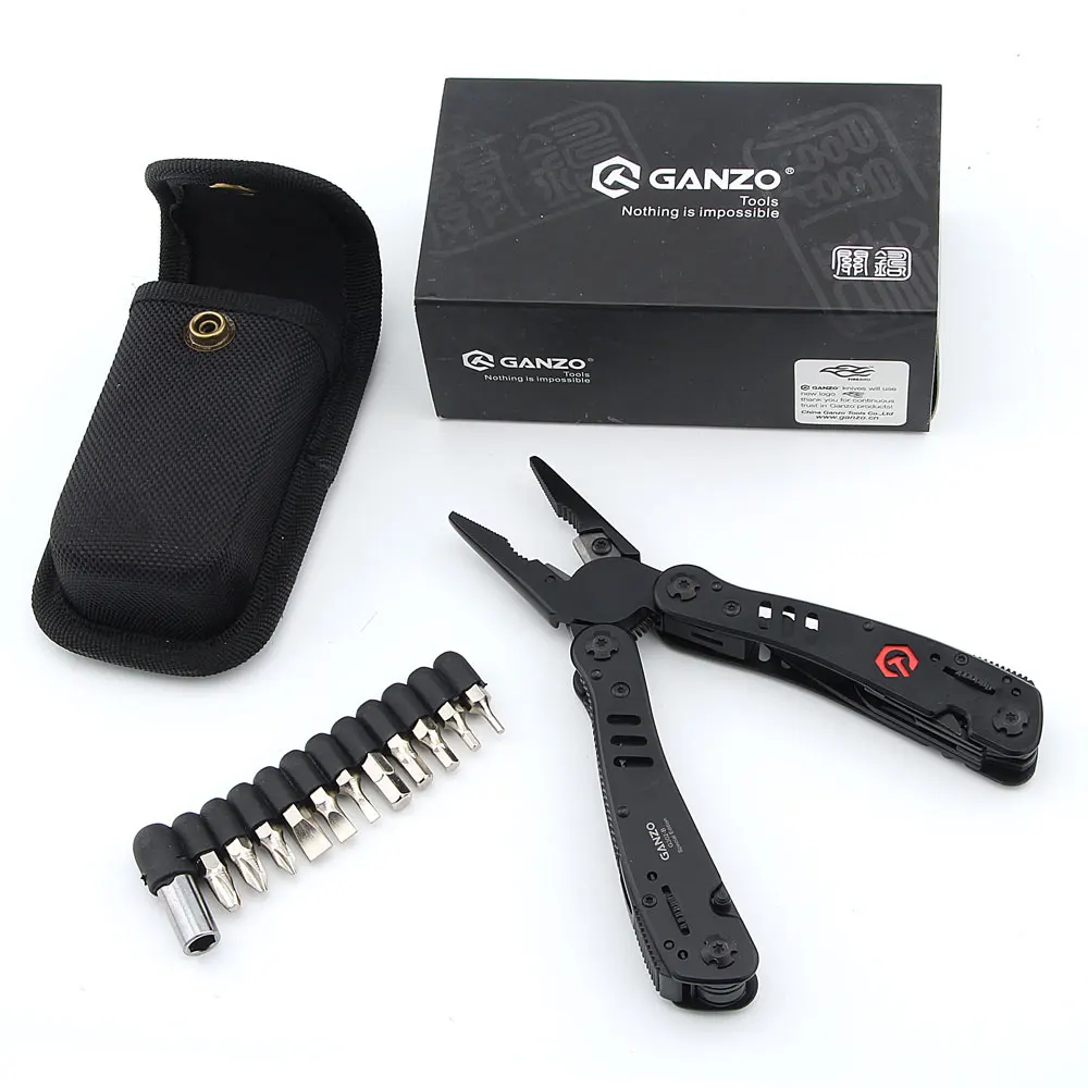 GANZO G302B Multi Tool Folding Pliers Survival Tool with Scissor Screwdriver Bit Wood SAW Awl Knife