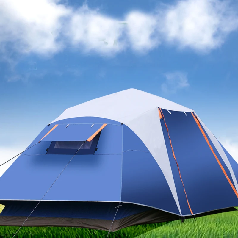 Double layers automatic Outdoor camping wild big tent 3-4-5-8persons 2rooms travel family tent 410